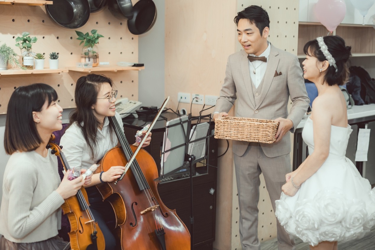 婚禮那天,新娘遲到了。她身體不太舒服,大家默默幫忙調整時間,等她準備好。當她終於出現時,美麗且笑容燦爛。那一刻整個現場安靜下來,只剩音樂與她靦腆的笑容交織著。我當時正在拉大提琴,心裡突然有一股暖意竄上來,好像洗滌了心中的厭世、無力感與疲憊。
