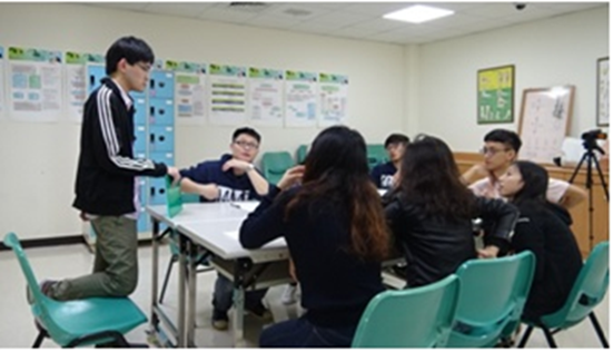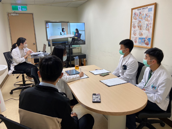 病情解釋及臨床處置以及醫病溝通與衛教是屬於醫學生在醫院臨床科實習時所要建立的基本技能,學生們需要經由照護病人的過程當中來跟主治醫師或住院醫師們學習,之前臨床老師們並沒有共同的教學模式。我們發現本院OSCE國考的婦產科、小兒科與急診科主要都以這兩種考題的成績表現尚待加強,可能與實習時間太短(2~5週)有關。所以我們邀請內、外、婦、兒與急診部主治與住院醫師加入教學團隊,擬定教案並教導住院醫師教案內容與教學技巧。舉辦自主學習工作坊,來協助教學與錄製教學影片。每次工作坊學生為3-5人,首先給予每位學生模擬訓練10分鐘(前測)並錄影,之後做團體錄影回放教學(30~40分鐘,圖5),然後再執行模擬後測並詢問教學的滿意度與教案的難易度以及自評學習成效,並錄製成教學影片(圖6)。運用模擬訓練與錄影回放的教學模式,可以提升醫五學生病情解釋與臨床處置以及醫病溝通與衛教的基本能力,學生看完教學影片之後,也可以來提高執行病情解釋與臨床處置的自信心。